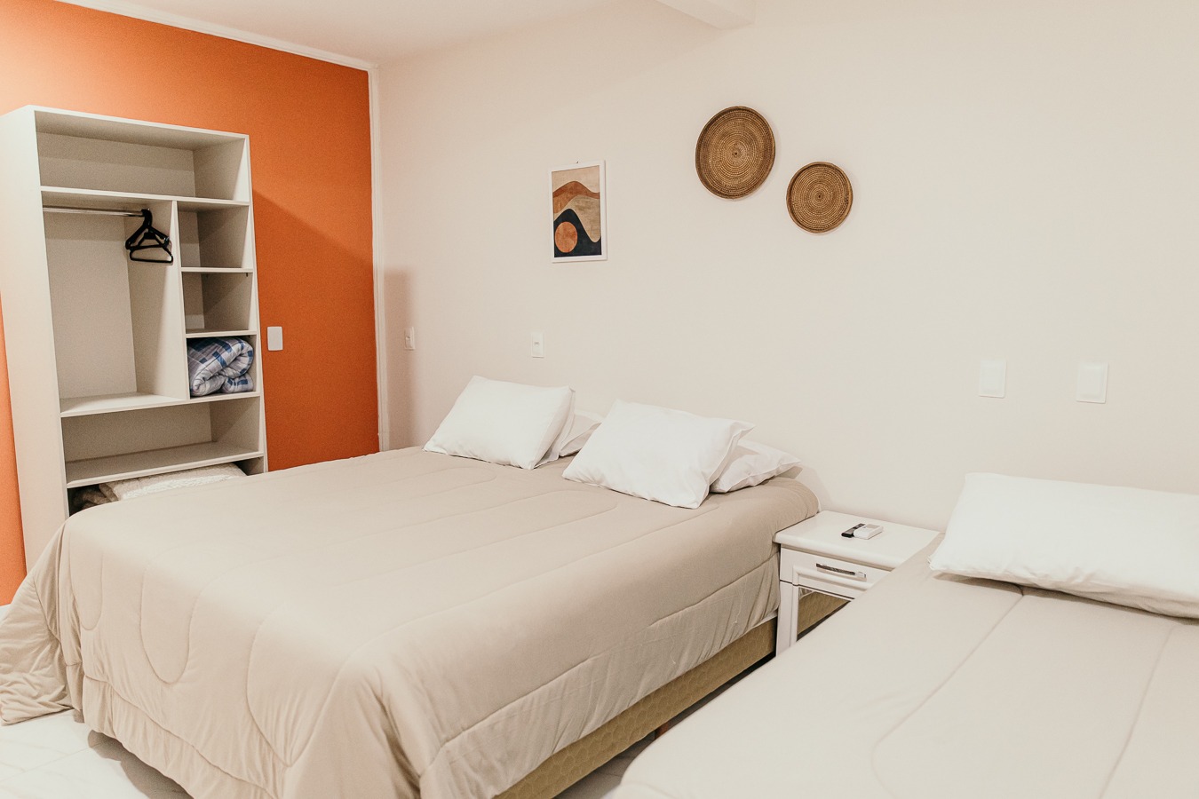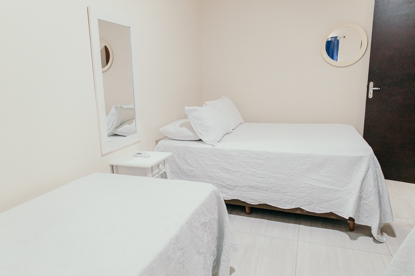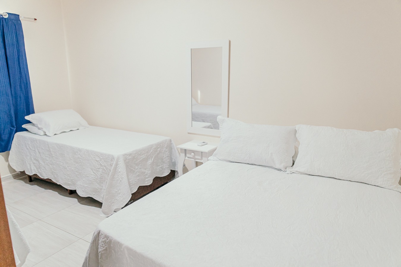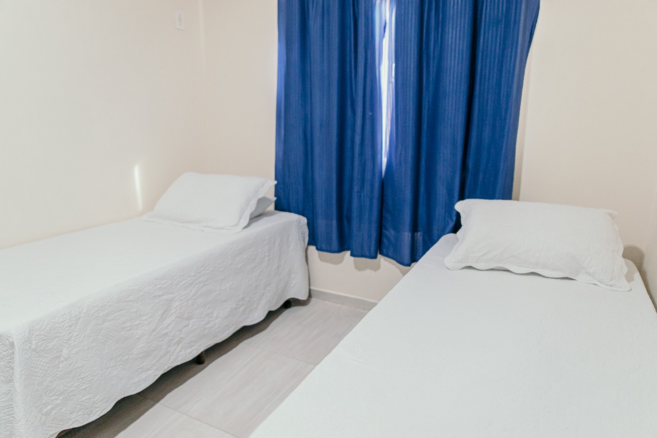 Cada unidade possui 2 dormitórios (1 quarto com 1 cama de casal + 1 cama de solteiro e outro quarto com 1 cama de casal + 2 camas de solteiro) ideal para 2 casais com filhos.