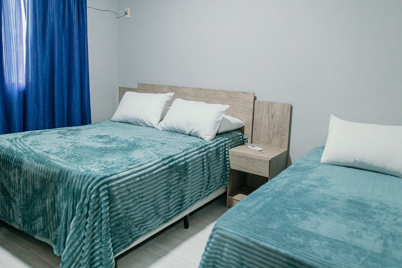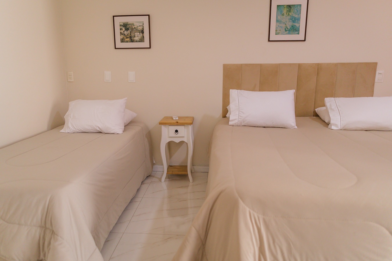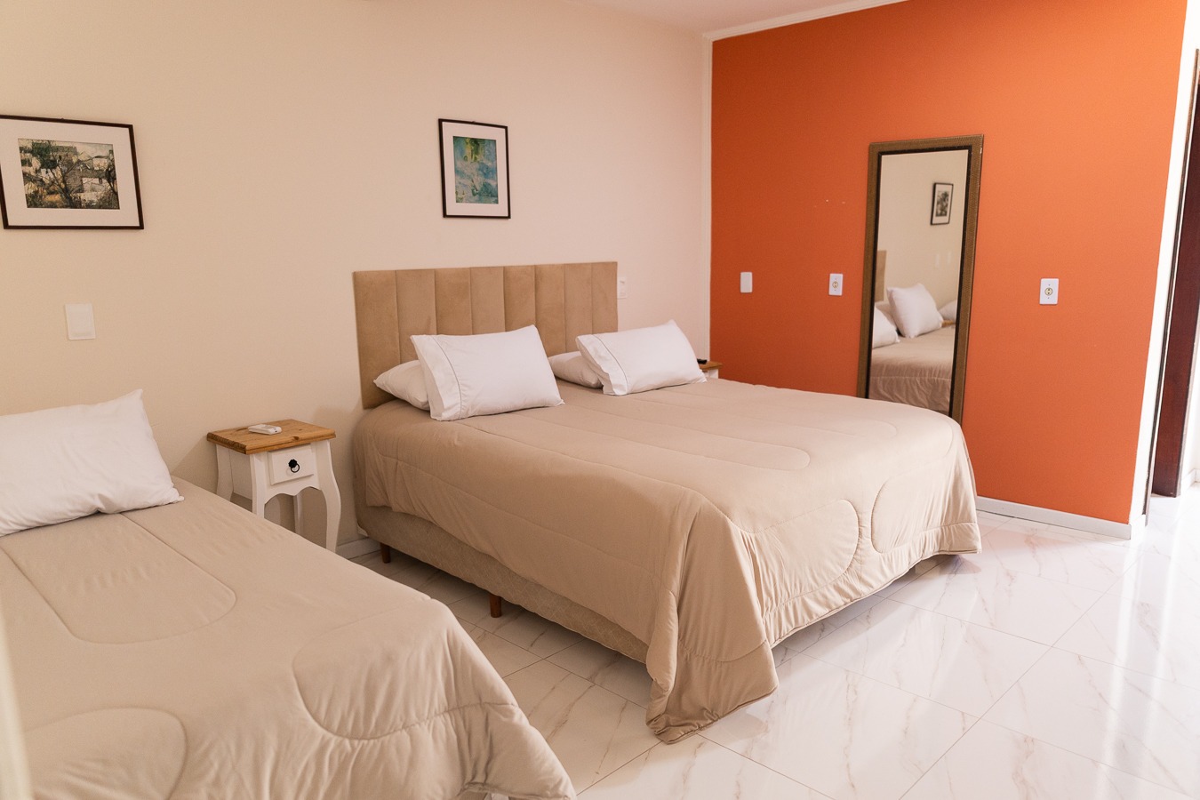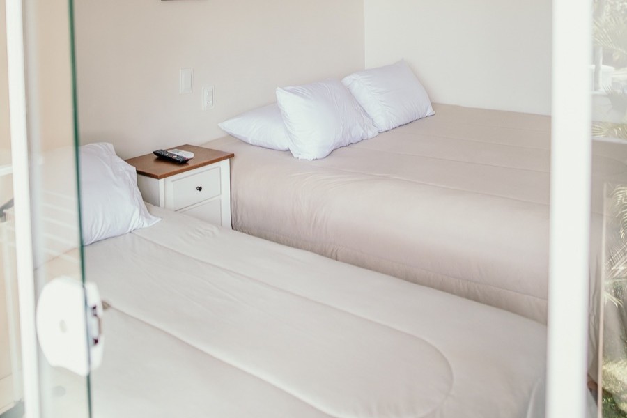 Cada unidade possui 2 dormitórios (1 quarto com 1 cama de casal + 1 cama de solteiro e outro quarto com 1 cama de casal + 2 camas de solteiro) ideal para 2 casais com filhos.