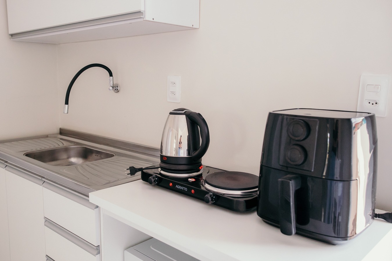 Também possui uma cozinha completa com todos os utensílios necessários, integrada à sala, todas as unidades do Bloco Estrela possuem sacadas privativas com churrasqueira a carvão.